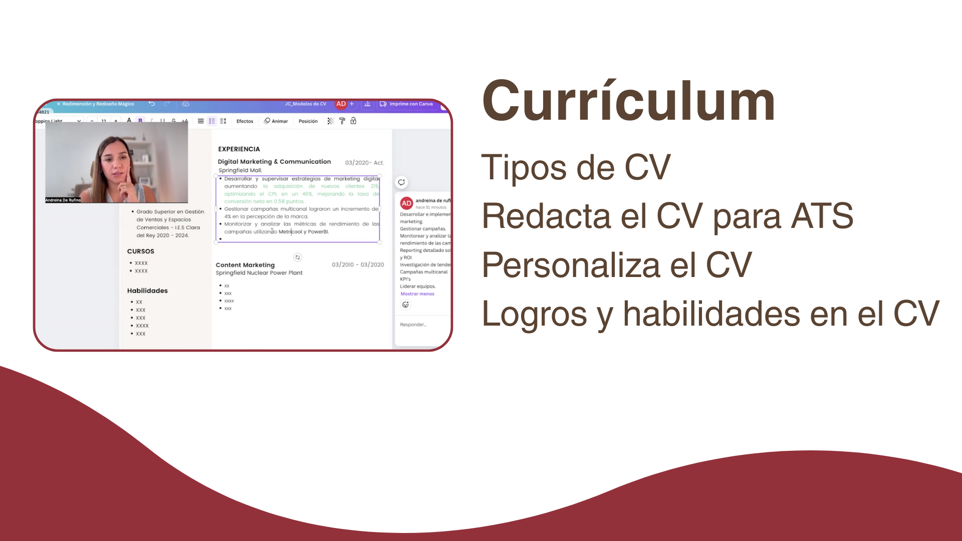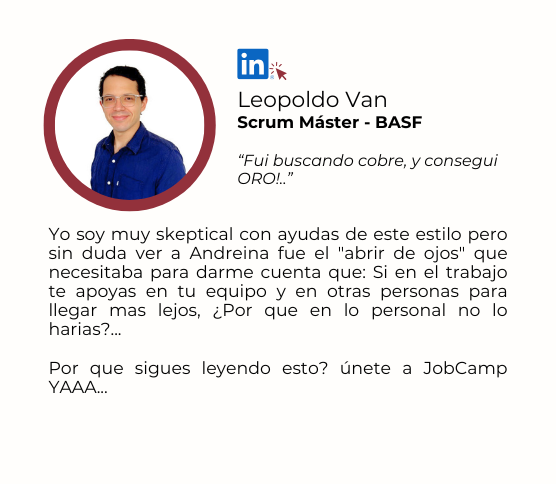 Si eliges JobCamp anual tienes sesiones privadas con Andreina para asesorarte directamente, acompañarte y evaluar tus avances.